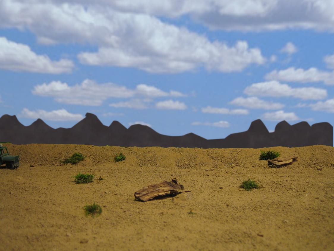 Hej! Håller på med en sekvens som utspelar sig i öknen. Bilden är fotad framför green screen-duk, sedan har jag i After Effects skapat avlägsna berg med pen tool och fractal noise. I bakgrunden har jag lagt en himmel-bild. Hur kan jag förbättra bilden? Hur gör jag bergen snyggare? Vad säger ni? Tack!