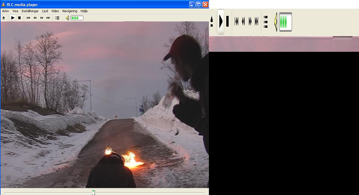 Tjena när jag har filmat i 4:3 i min kamera och lägger in det på datorn blir det ett konstigt sträck som rör sig på kanten högst uppe i filmen. Se bilden förstår ni kanske mera. Undra om de går på fabriks fel? För jag har inga garanti kvar.