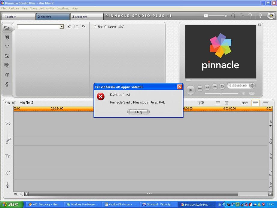 DV-kameran spelar in i PAL men min version av Pinnacle är förinställd på NTCS och det går inte att välja PAL i inställningarna. Någon som vet om det går att lösa detta med ett codec eller nåt?